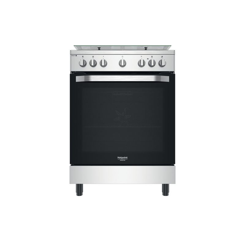 Caratteristiche di questa cucina a libera installazione 60 x 60 Hotpoint Ariston: 4 fuochi. Colore inox. Alimentazione mista. Metodo di cottura multifunzione. 60 cm di larghezza.